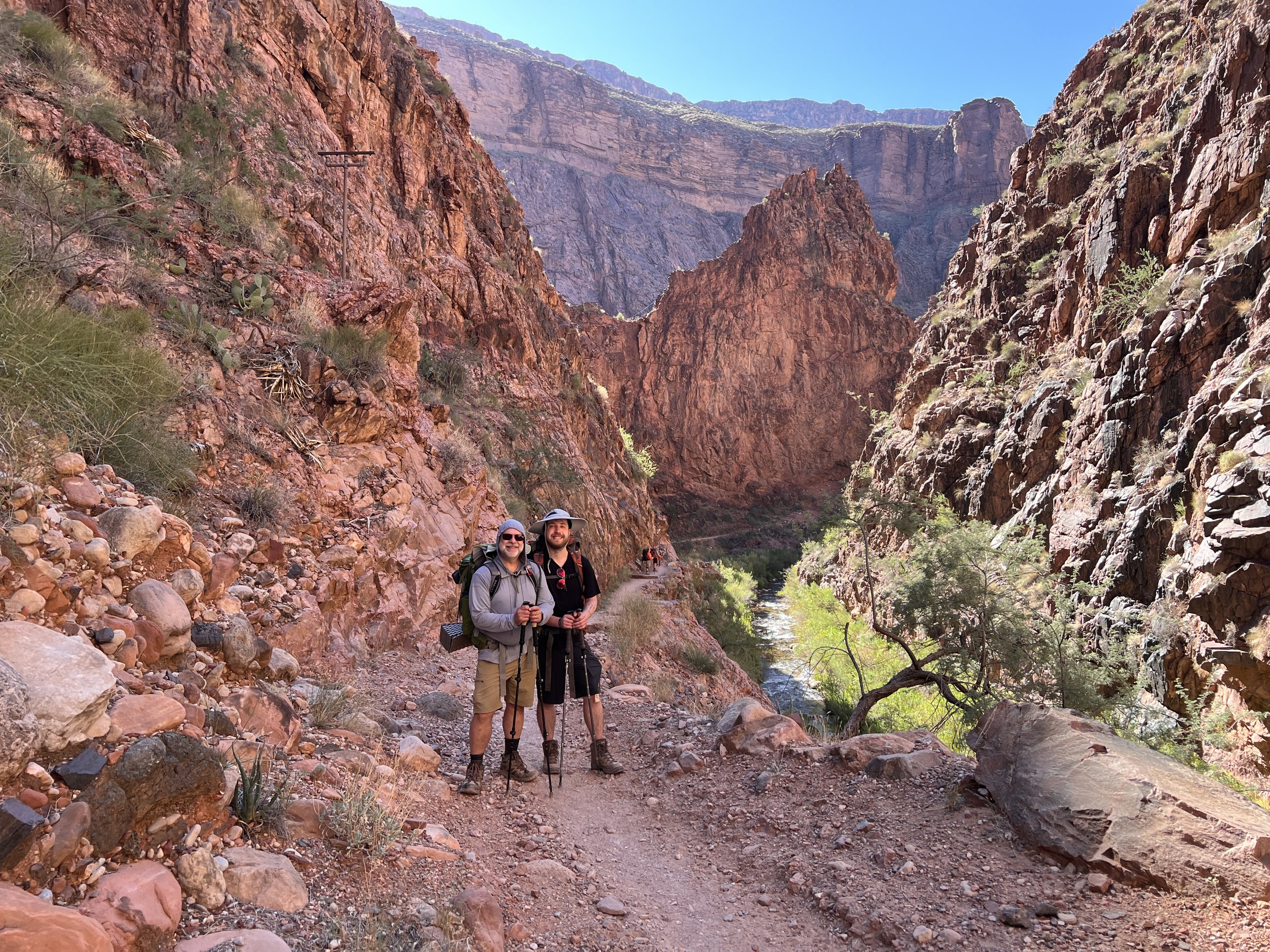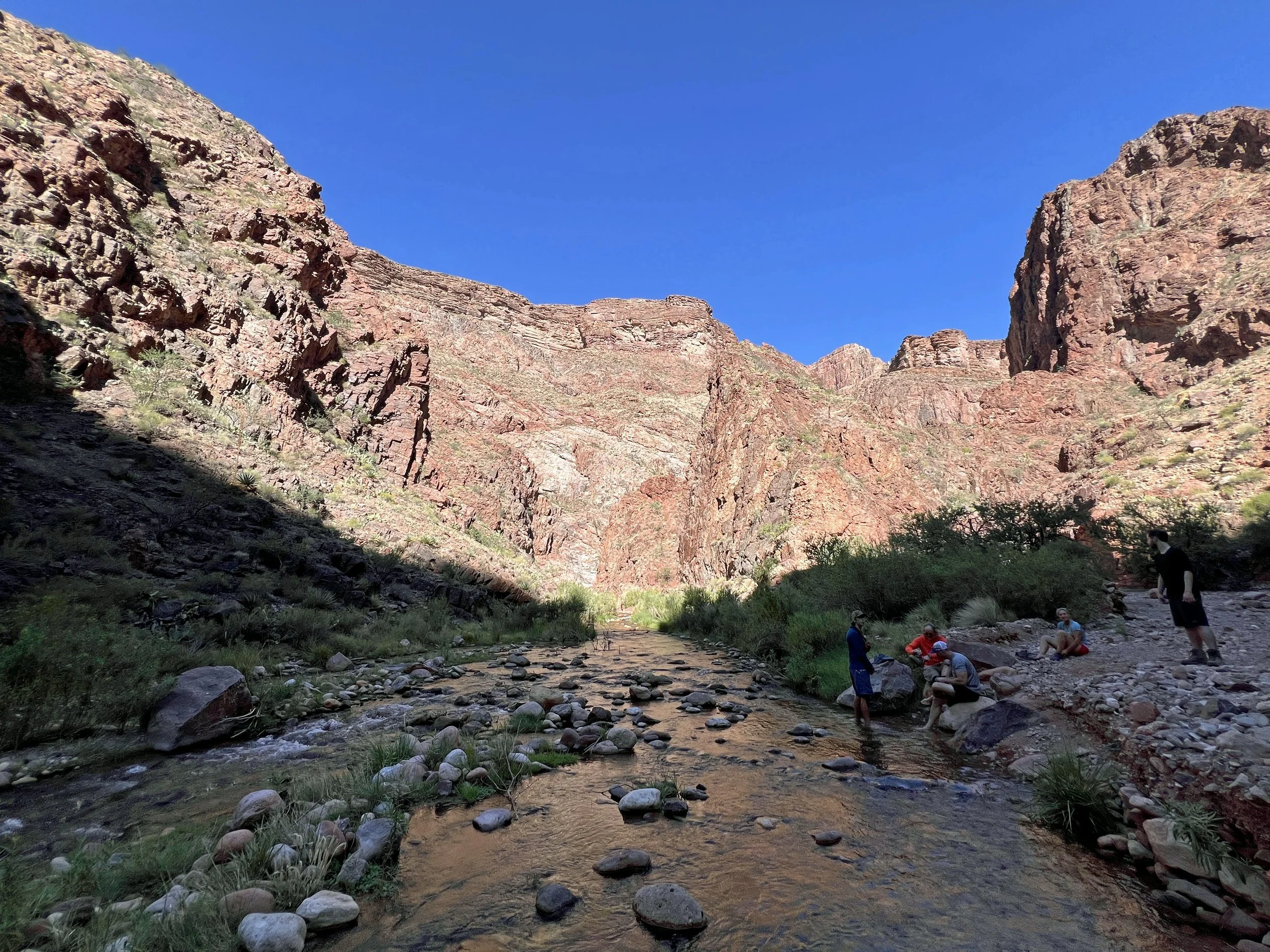 After lunch, Wes and I split our time between hiking and soaking in the creek. We did a bit of exploring, scouting the trail that we’d be taking to the Colorado River and our ascent along Bright Angel trail on our third day of the hike. In the stream across from our campsite we were encouraged to “sit our butts down in the water” by some fellow hikers. They started giving us shit when it took us a couple of minutes to get in. For some strange reason they thought we would not get in! The cool water and new friends were both a welcome break from the heat.